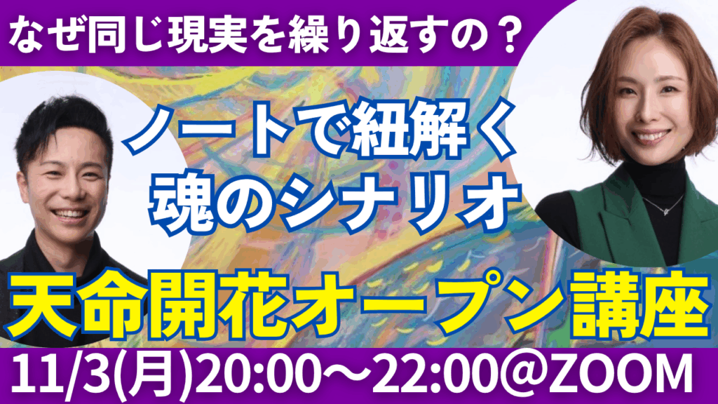 2025/11/3【天命開花オープン講座】~天命開花13の約束事「ノートの提出、天命プレゼンが自分と、他者とより深く繋がる事を体験する」~ 講師:清水信吉&石川清美